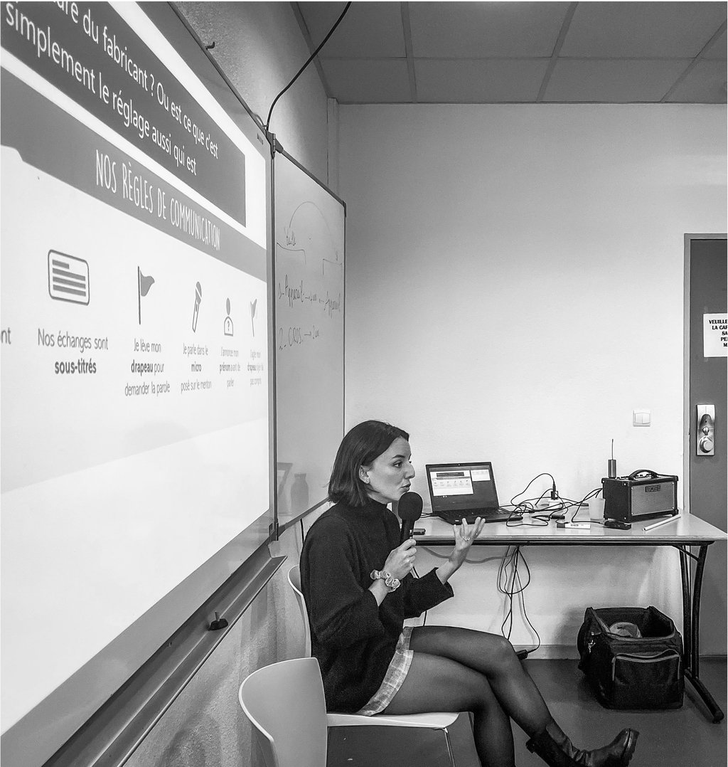 Nous mettons également en place du sous titrage automatique projeter sur le grand écran de la salle. Quand cela est possible nous faisons appel à un service de transcription par des interprètes de l’écrit à distance pour avoir un sous titrage fluide et top qualité. L’association a pour volonté de financer plus de temps en sous titrage Humain