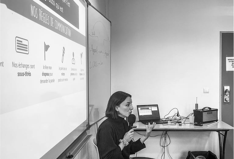 En début de chaque rencontre nous rappelons les consignes de communication qui permettent d’assurer une bonne compréhension des échanges.